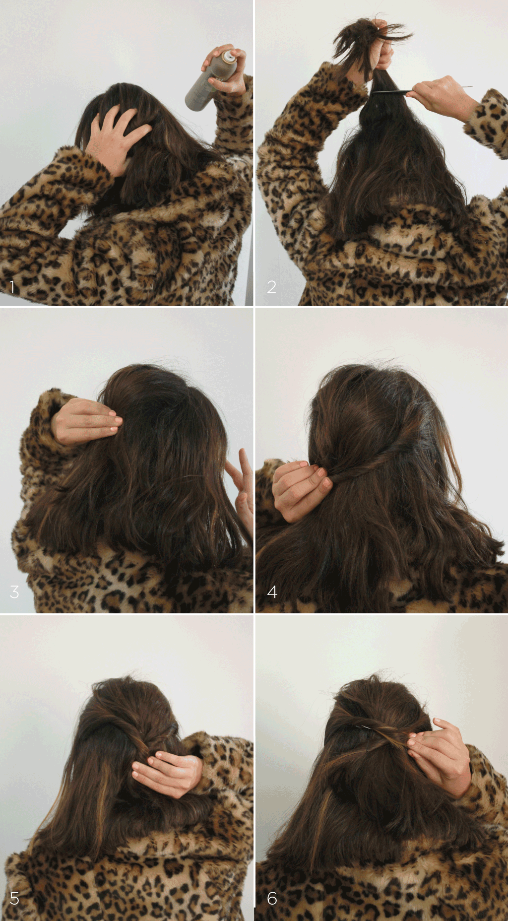 1. Este peinado necesita mucha textura para que haya un buen agarre, así que llénate el pelo de laca y desordénalo con tus manos.