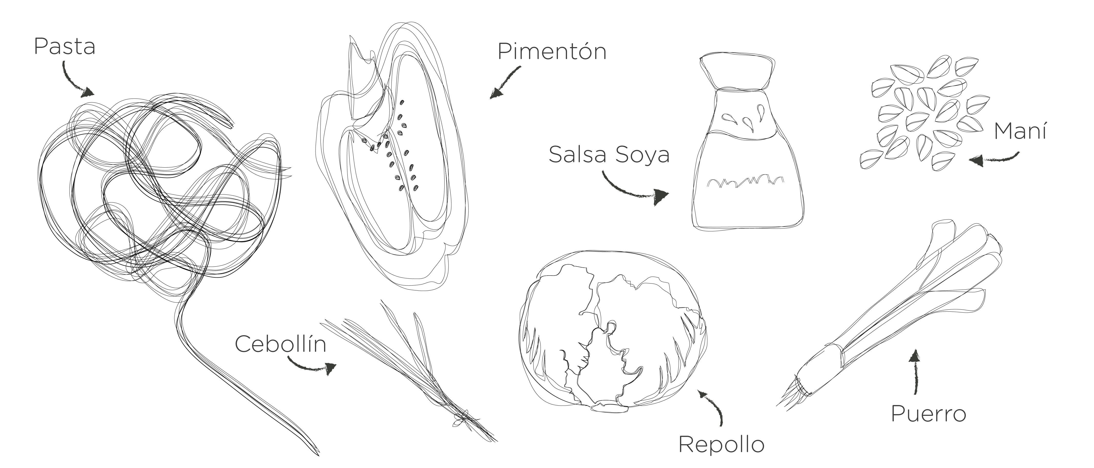 Hace poco nos dio antojo de Wok pero las tres estábamos sin un peso y sin ganas de salir, entonces les propuse que hiciéramos una pasta orientaloide. En Carulla, Jumbo y en casi todos los supermercados venden una pasta de arroz que me encanta porque es baratísima y porque me hace creer que la receta realmente es oriental. Con esa pasta y unos ingredientes básicos, tuvimos un almuerzo perfecto.