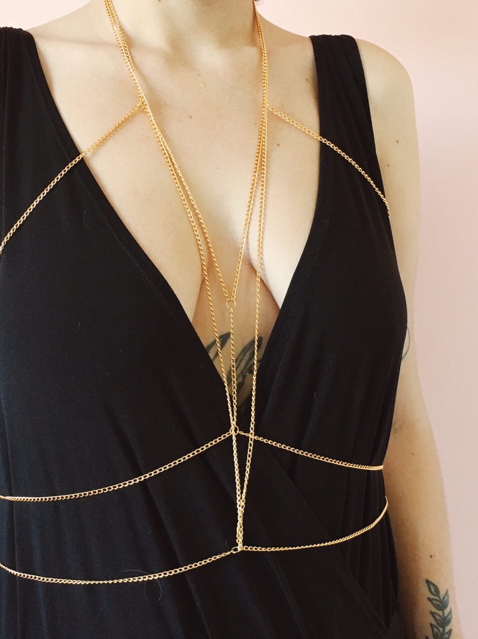 Las cadenas de cuerpo nos gustan porque son perfectas para usar con escotes y en ideario nos gustan los escotes. Aunque pensándolo bien, realmente se pueden usar con cualquier cosa, entonces si no te gustan los escotes y prefieres usar sacos cuello tortuga, igual ponte esta cadena de cuerpo porque va a hacer que cualquier pinta se vea diez veces mejor.