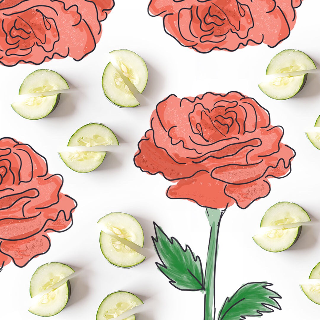 Para la mascarilla se necesitan dos ingredientes: el pepino cohombro, que genera un efecto aclarante en la piel, reduce la hinchazón y mejora la elasticidad, entre muchos otros beneficios. Y el agua de rosas, a la que ya le hicimos un altar en un post anterior.